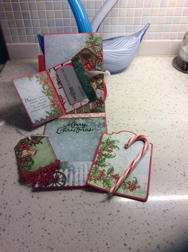 Look! There’s even a little gift card holder!! So cute! Gotta admit, got my idea from Kathy Clement, one of the queens of scrapbooking!!