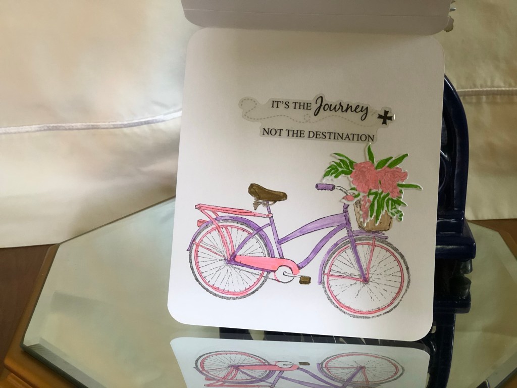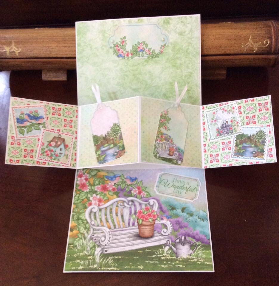 Begin on the inside, placing the inside designer paper, along with your message and non-dimensional embellishments, then move to the front of your card.