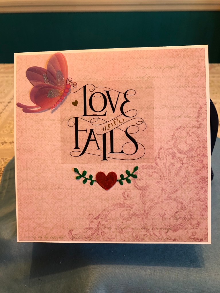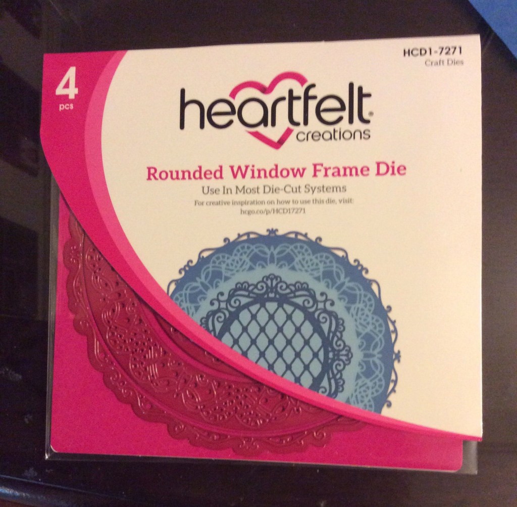 For this card, I cut a little doily out of 110# white cardstock, using Heartfelt Creations Rounded Window Frame die, (the next to largest one) and for the corners I used the Fanci-fold Pocket & Accents die.
