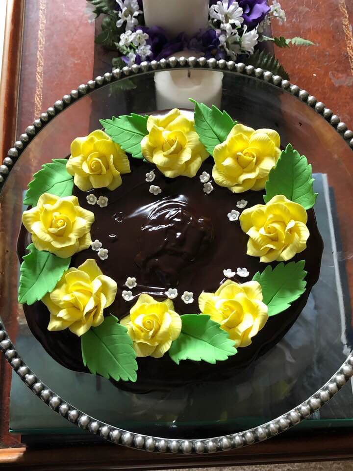 Since I am the cake decorator extraordinaire, I put some gumpaste roses on top to pretty it up for Thanksgiving.