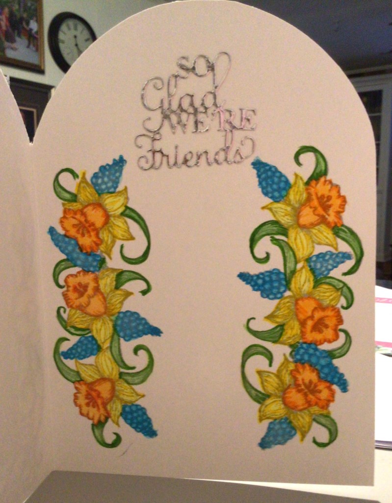 Today is the anniversary of my fathers death 4 years ago. It’s still hard on all of us, despite our getting to keep him for 80 years. I made this little card for my mom, who lives 12 hours away from me, alone with her 2 cats, and German Shepherd.