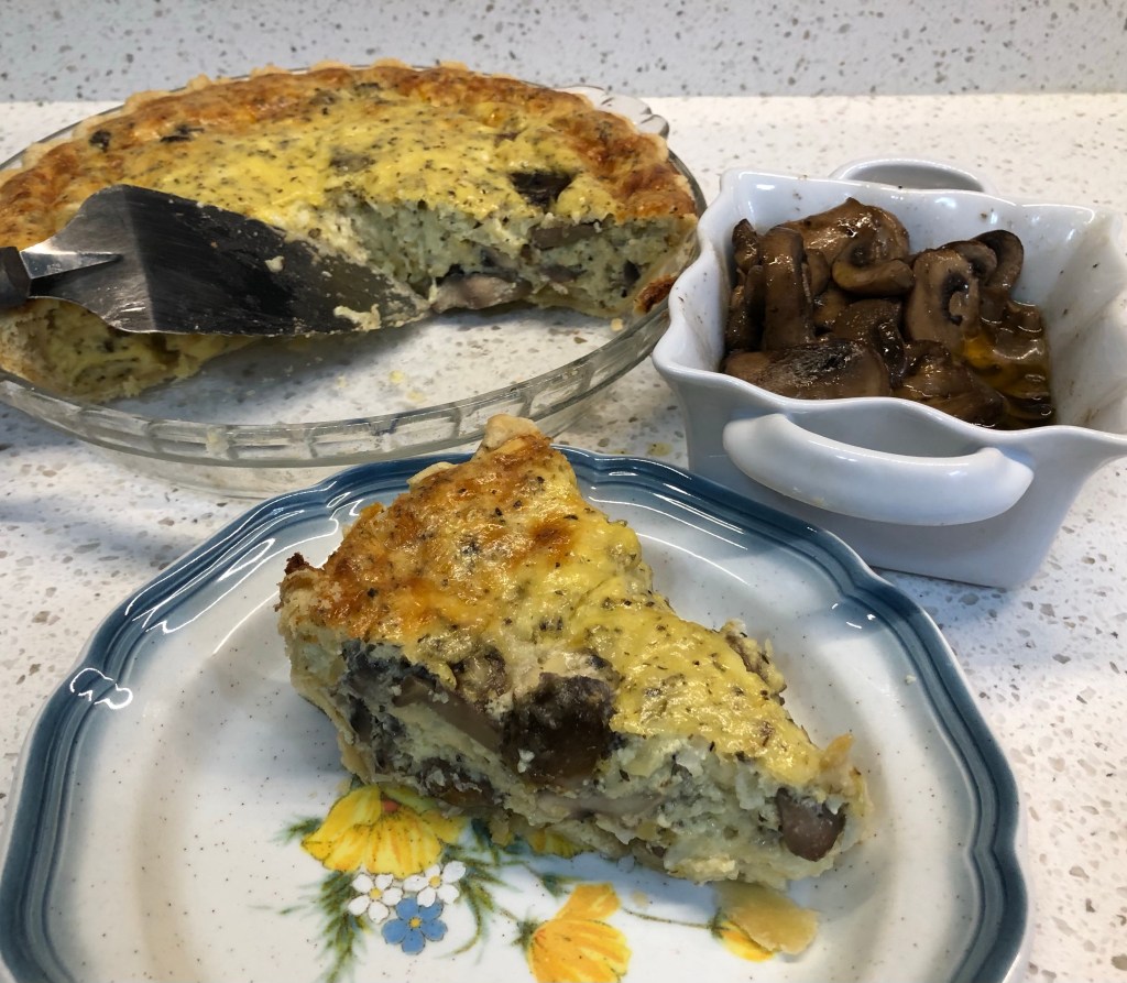 Top the individual slices of Quiche with left over mushrooms, if desired. Add some of my Spicy Arugula Salad, and another vegetable, and you have dinner ready in no time!