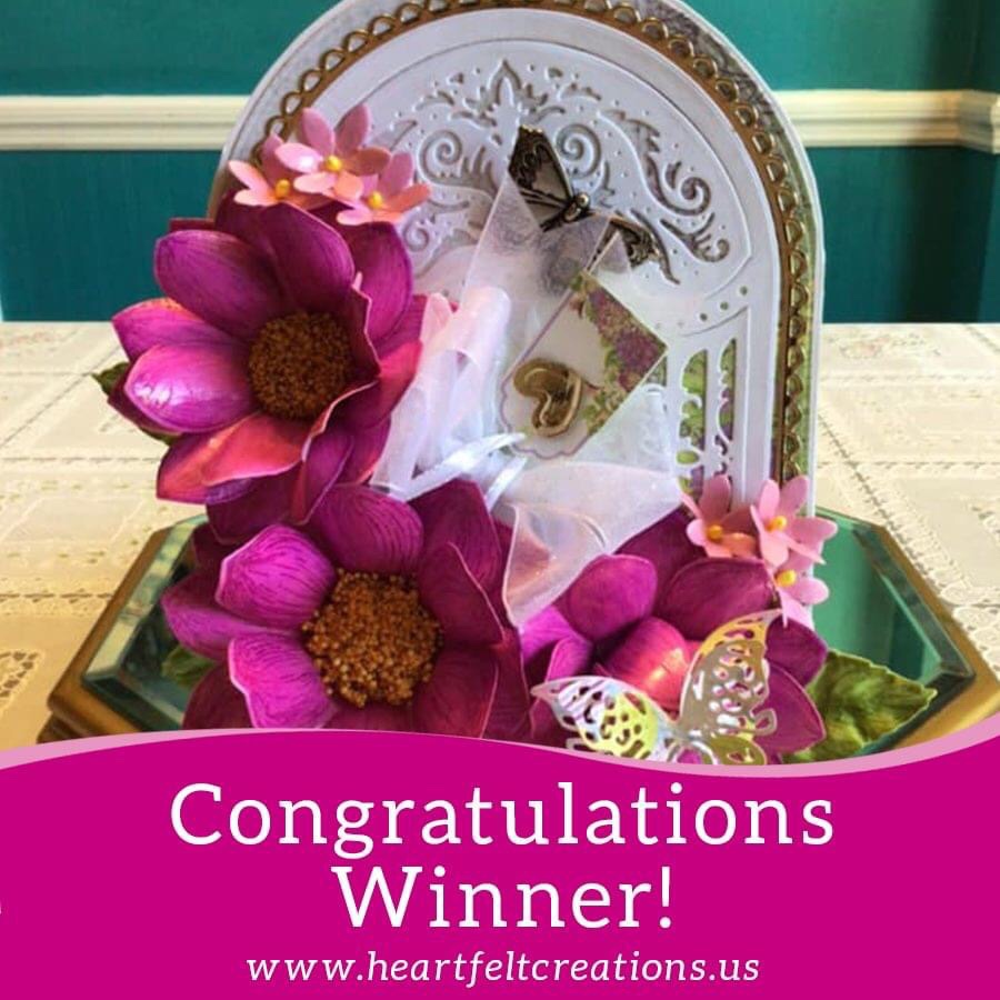 I was super excited to see that I won one of the monthly contests by Heartfelt Creations! Funny enough, on my FB post, I said that I already felt like a winner, because working on the flowers and playing with the beautiful paper helped me get out of a crafting slump!