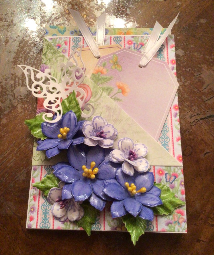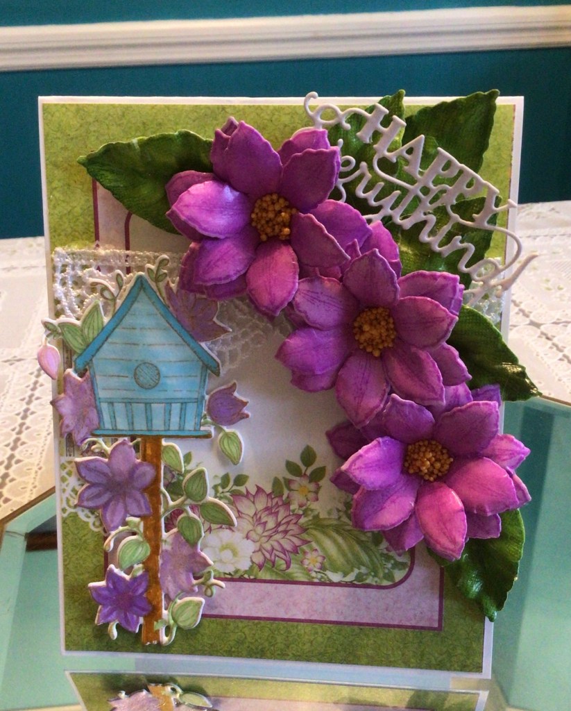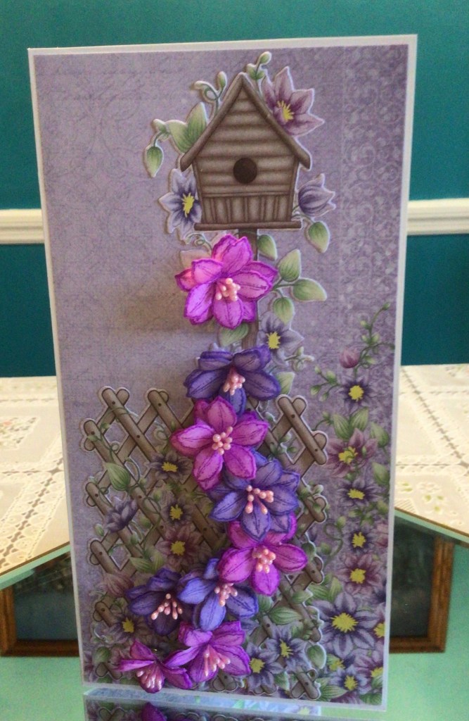 In the evenings, I like to make flowers, and dream up designs for cards. On Fridays and Sundays I try to actually make the cards or folios. I’m even trying to branch out from Heartfelt Creations, but they just have such adorable designs!!! This is more Climbing Clematis and a Sweet Magnolia card.