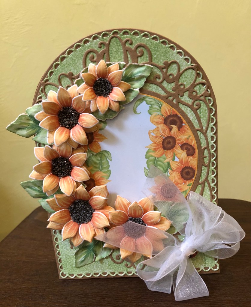 This beautiful card was created using what one might call “minimal skill level” – of course it does help to have purchased the divine dies from Heartfelt Creations, but then, all one must do, is locate the flowers in the paper pad, cut, and gently curl the petals, then glue into place! No stamping, ink or coloring required – perfect every time!