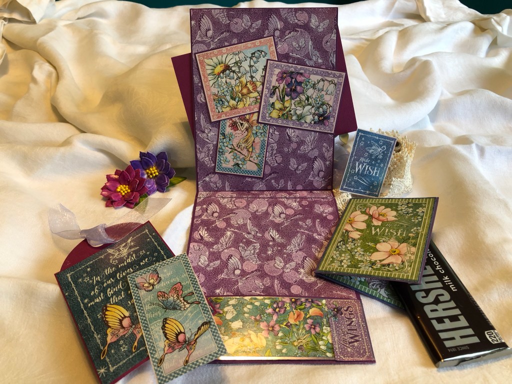 I’m in love with Graphic 45’s Fairies – whether its the Fairy Dust or Fairy Wings paper, they are both just adorable. This card is really sort of like a folio/gift card, as you will see – the inside has a pocket that has goodies inside. This is another card I may enter into a DT contest.