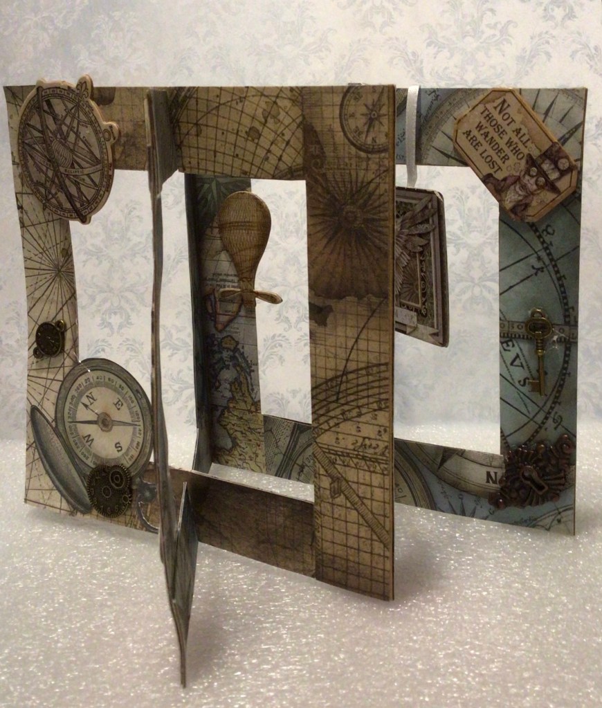 These are two different accordion tunnel cards – I needed something for a young man’s birthday (hence the Steampunk) but as I had never made one before, I needed to practice and kind of make a template.