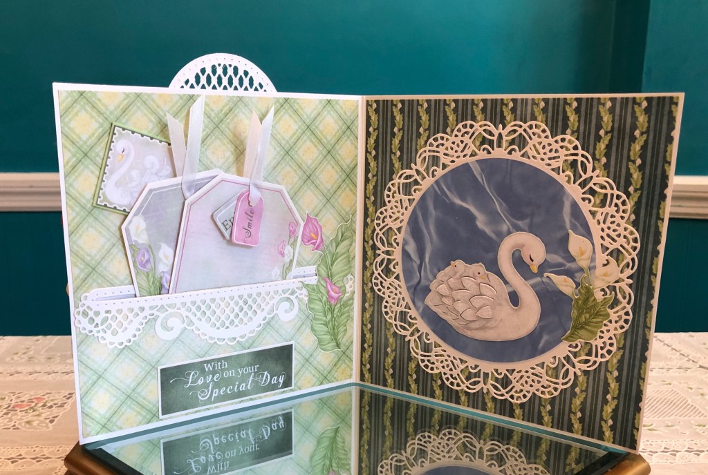 I had a lot of fun working on this Birthday card for my daughter last week. Mostly I have used Heartfelt Creations Calla Lily paper, but I just had to have some “water” for my swan, and found a sheet in my stash for the mama swan and her babies to float on. The calla lilies and roses are hand made, using HFC dies.