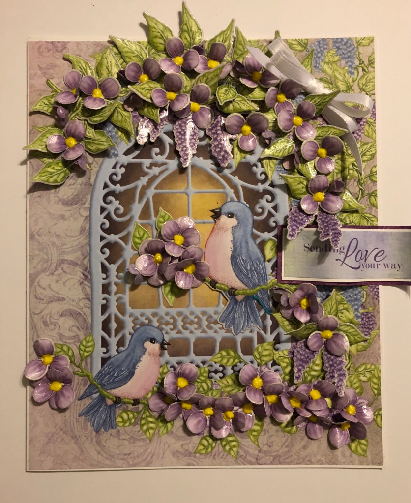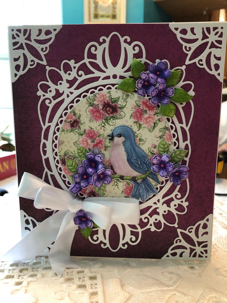 So I have a goal of creating 50+ Mother’s Day cards this year, to give to a Nursing Home on Mother’s Day. You will see the “Happy Mother’s Day” message a LOT this coming year! This is one using a collection from the spring, the Climbing Clematis, and is on a 6” x 6” card base.